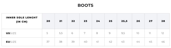 | Rozmiar buta | |