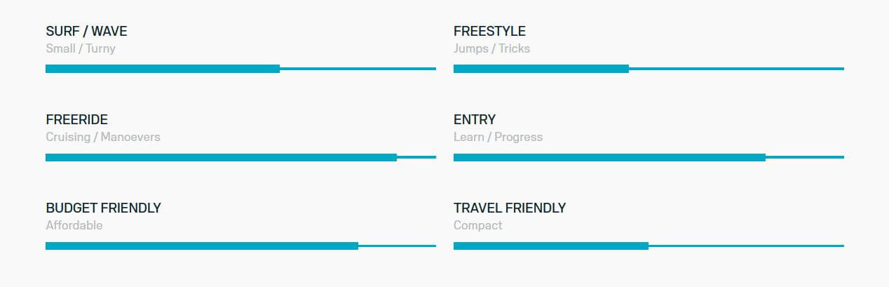 | 5’10” | 100l | x” / xcm | 5’10” / xcm | bdkg | 2* US foil tracks | < x kg |